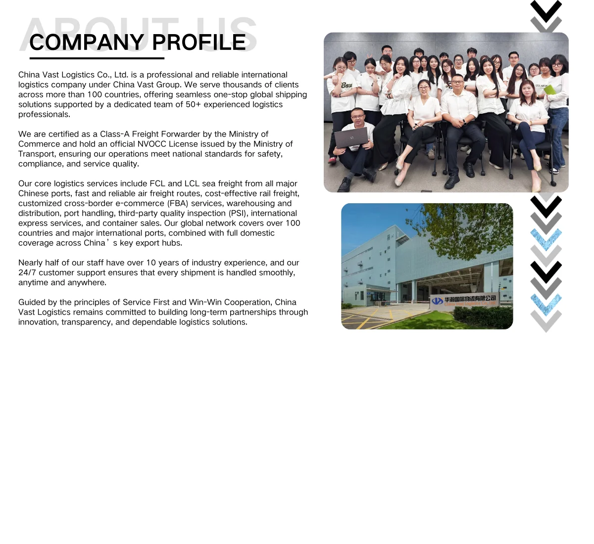 China Vast Logistics company is a comprehensive international logistics company.